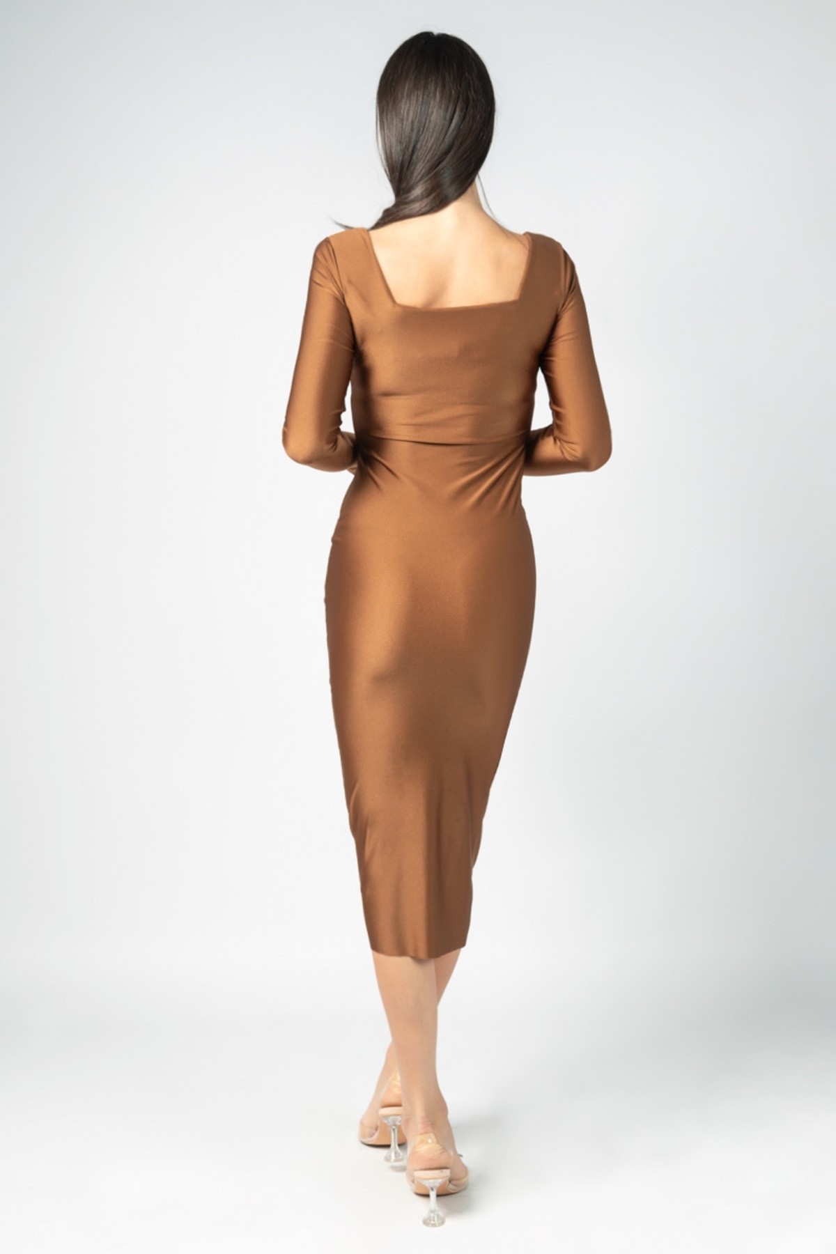 Lycra midi dress with square neckline