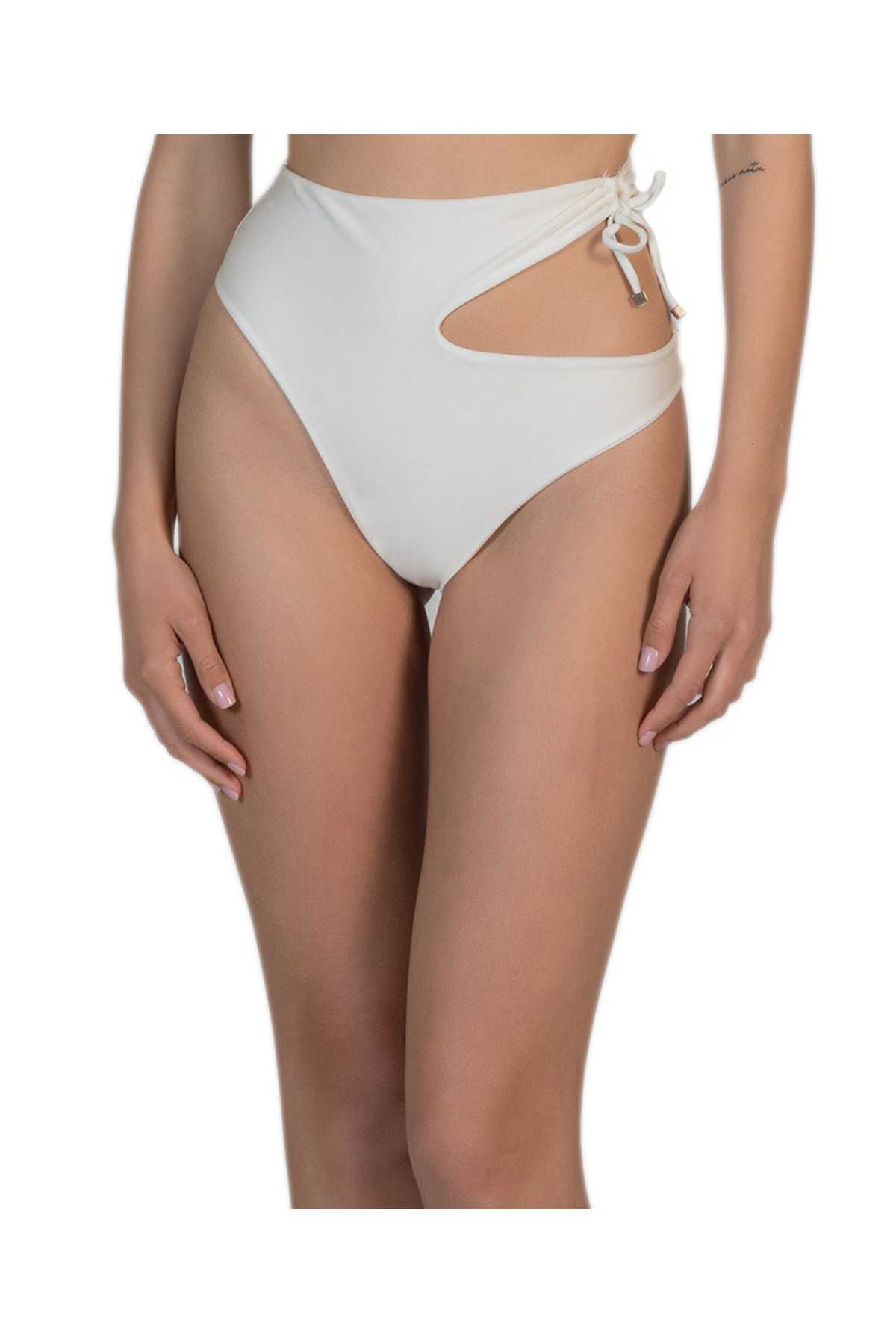Braguita de cintura alta con cordón ajustable y sección recortada.