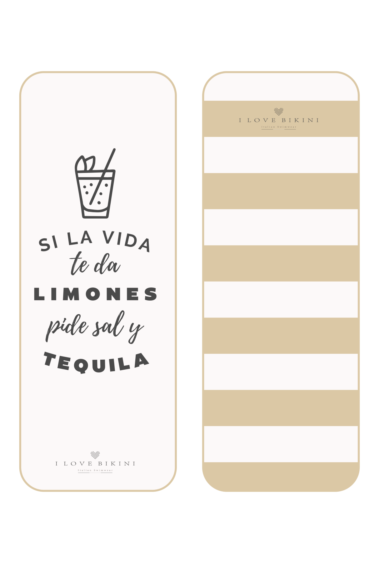 Telo mare in microfibra con scritta "SI LA VIDA TE DA LIMONES PIDE SAL Y TEQUILA"