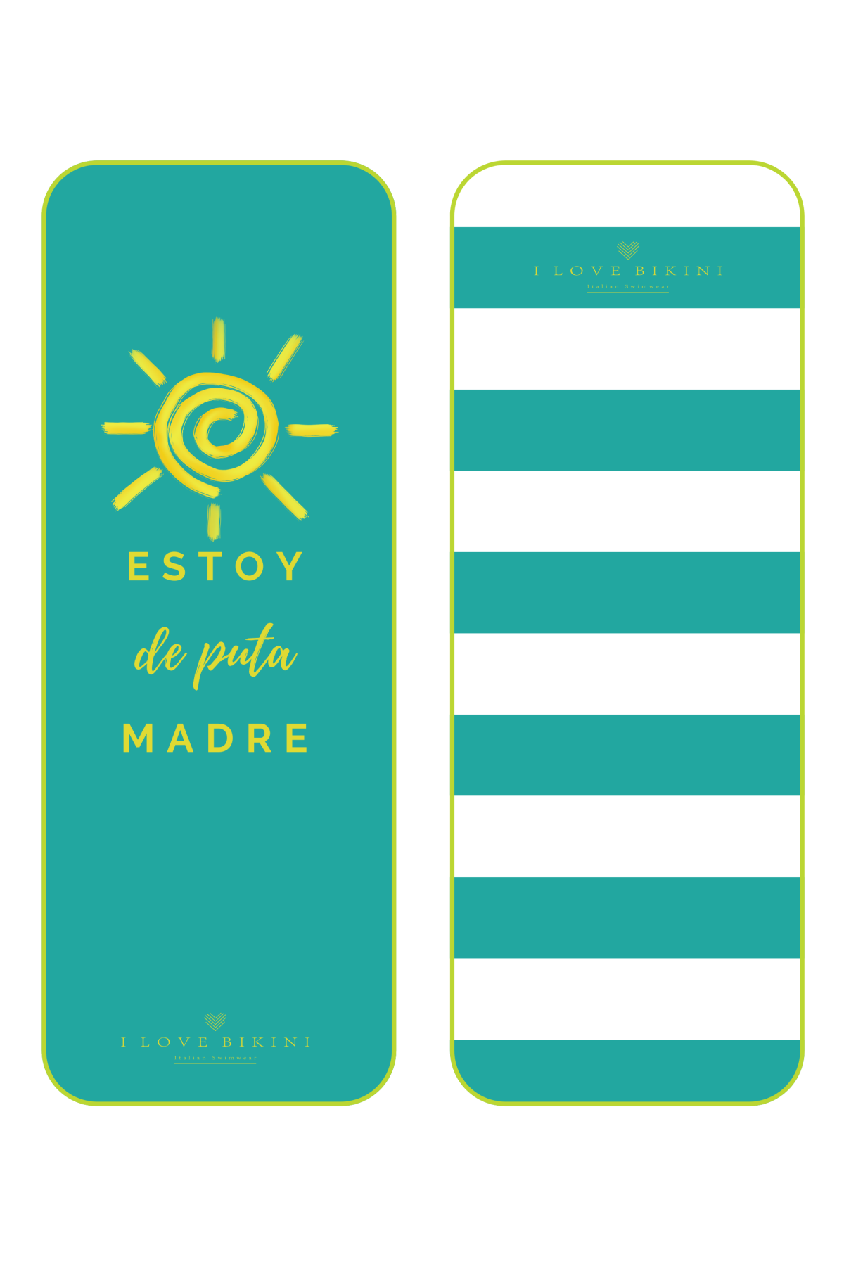 Telo mare in microfibra con scritta " ESTOY DE PUTA MADRE".