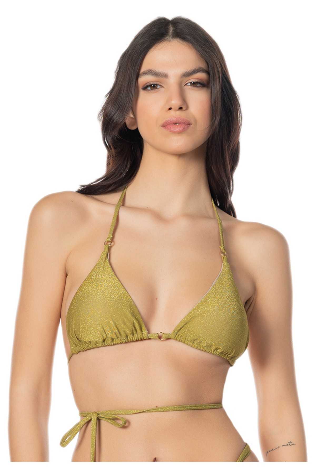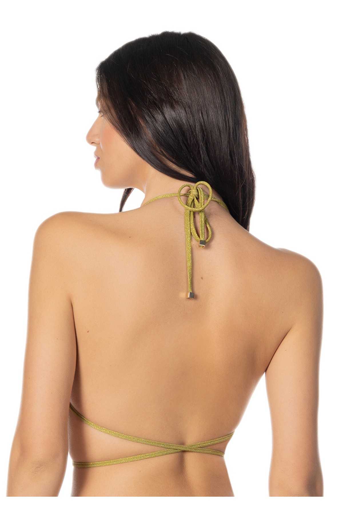 Triangolo in lurex con lacci lunghi e dettagli in oro