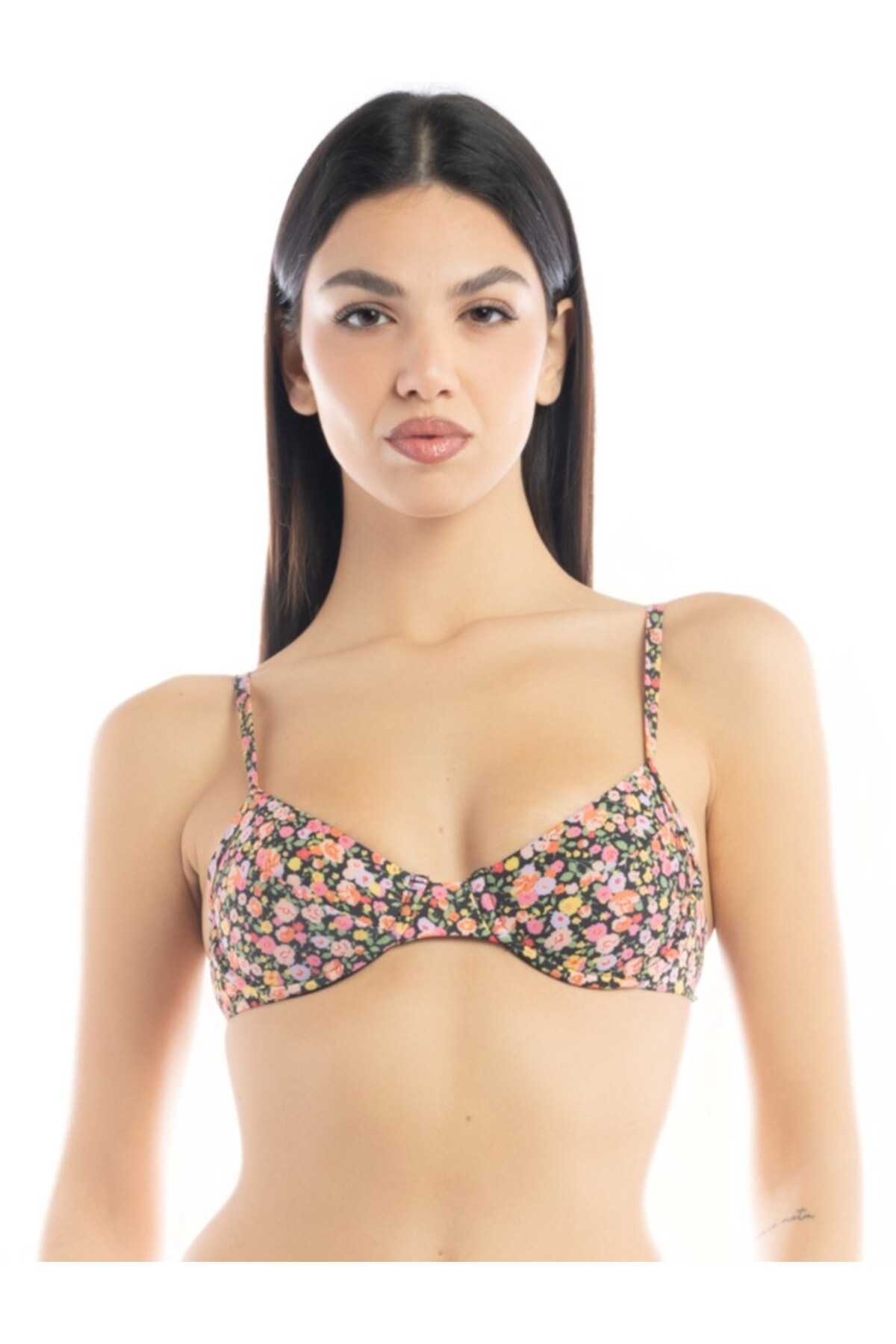 Top con ferretto in lycra con stampa floreale